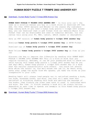 Download T Trimpe 2002 Human Body Puzzle Answer Key Kindle Editon By Click Button. T Trimpe 2002 Human Body Puzzle Answer Key it’s easy to recommend a new book category such as Novel, journal, comic, magazin, ect. You see it and you just know that the designer is also an author and understands the challenges involved with having a good book. You can easy klick for detailing book and you can read it online, even you can download it