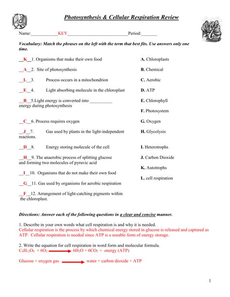 Read Online Photosynthesis Cellular Respiration Review Answers Epub